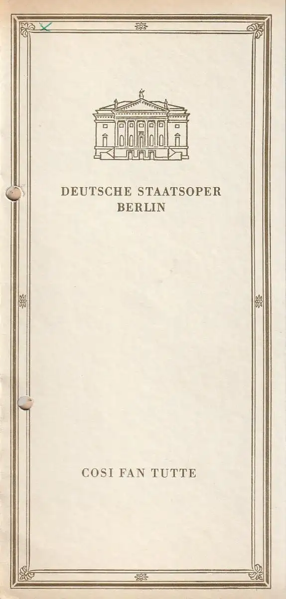 Komische Oper inzwei Alten von Lorezo da Ponte. Musikalische Leitung: Otmar Suitner. Inszenierung: Erich Alexander Winds. Ausstattung: Paul Pilowski. Mitwirkende: Celestina Casapietra, Annelies Burmeister, Robert Lauhöfer, Peter Schreier, Sylvia Geszty, Theo Adam, u. a. - Theaterprogramm, Opernprogramm, Ballettprogramm, Musicalprogramm, Konzertprogramm, Theatermemorabilia, Programmhefte Sammlung, deutsche Theatergeschichte.