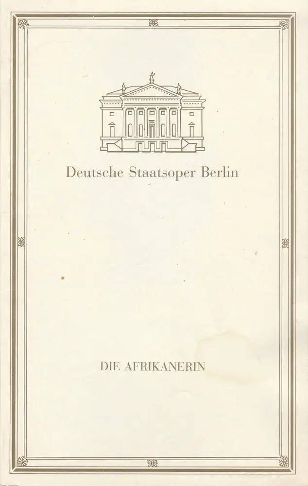 Deutsche Staatsoper Berlin, Manfred Haedler, Helga Jäger, Rolf Kanzler, Wolfgang Jerzak: Programmheft Giacomo Meyerbeer DIE AFRIKANERIN Premiere 8. Mai 1992.