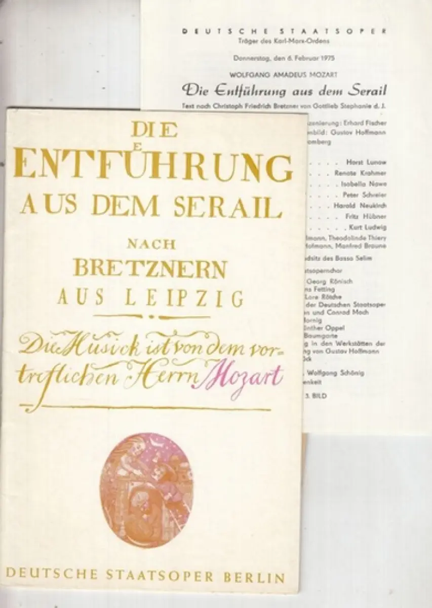 Deutsche Staatsoper Berlin. - Mozart. - Peter Schreier u. a: Programmheft zu: Die Entführung aus dem Serail. - Donnerstag, 6. Februar 1975. - Musikalische Leitung: Wolfgang Rennert. - Inszenierung: Erhard Fischer. - Mitwirkende: Horst Lunow, Renate Krahme