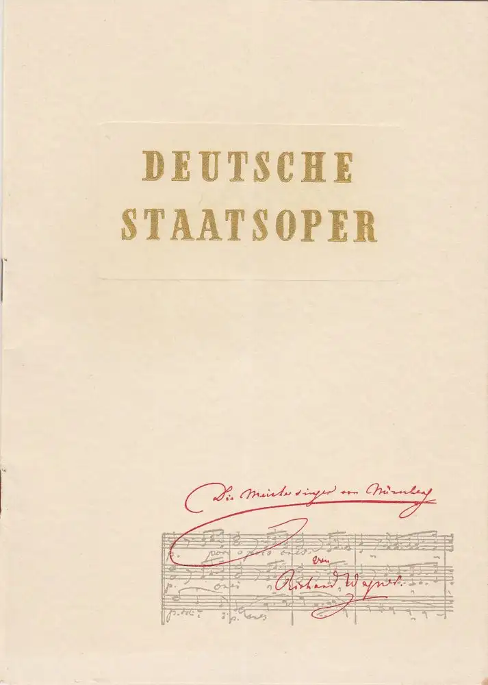 Musikalische Leitung: Karl Egon Glückselig. Inszenierung: Wolf Völker. Bühne: Lothar Schenck von Trapp. Mitwirkende: Rudolf Gonszar, Theo Adam, Hilbert Kahl, Walter Stoll, Heinrich Pflanzl, Eugen Fuchs, u.a. - Theaterprogramm, Opernprogramm, Ballettprogramm, Musicalprogramm, Konzertprogramm, Theatermemorabilia, Programmhefte Sammlung, deutsche Theatergeschichte.