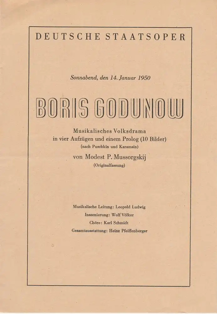 Deutsche Staatsoper Berlin: Programmheft BORIS GODUNOW. Musikalisches Volksdrama von Modest P. Mussorgskij 14. Januar 1950.