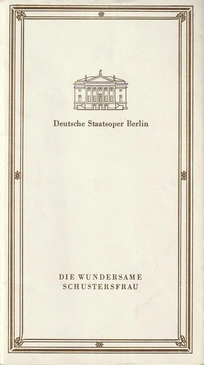 Deutsche Staatsoper Berlin, Walter Rösler, Wilfried Werz: Programmheft Udo Zimmermann DIE WUNDERSAME SCHUSTERSFRAU.