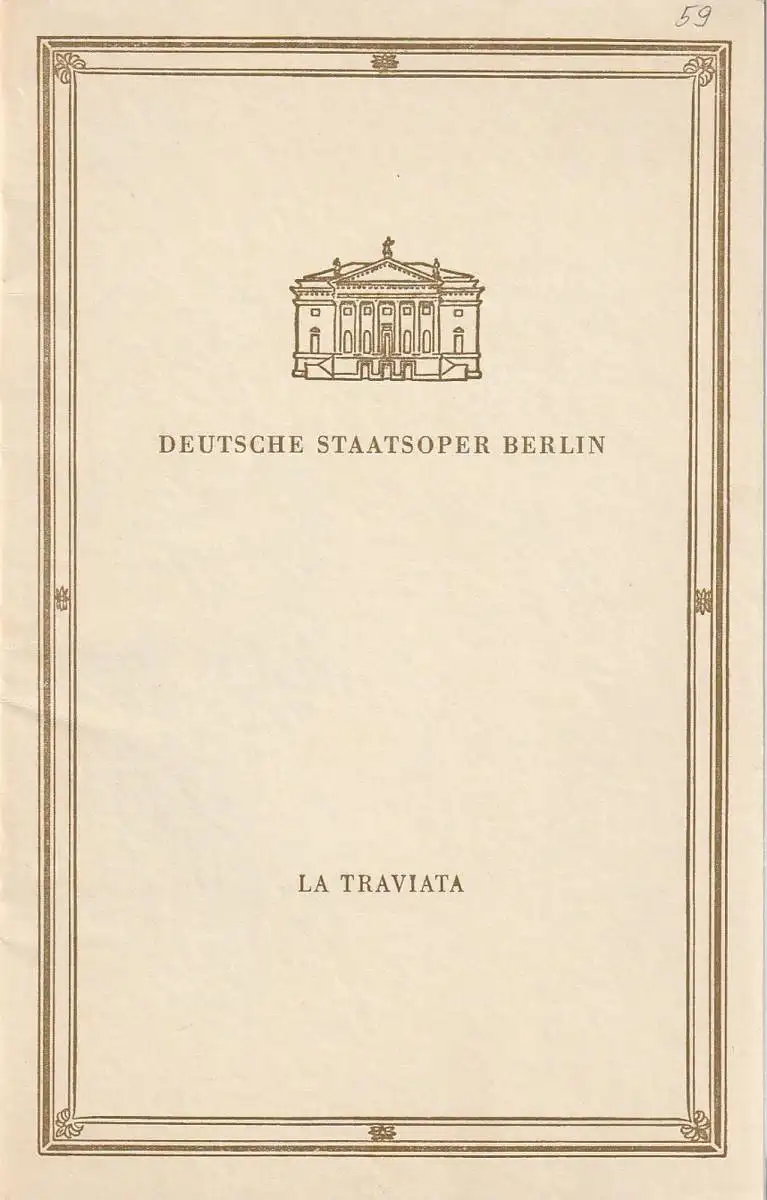 Deutsche Staatsoper Berlin, Werner Otto, Joseph Hegenbarth: Programmheft Giuseppe Verdi LA TRAVIATA 21. Dezember 1959.