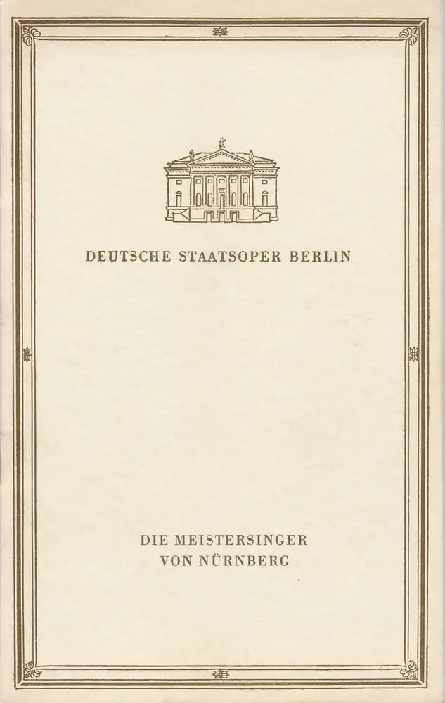 Musikalische Leitung: Franz Konwitschny. Inszenierung: Max Burghardt. Gesamtausstattung: Ludwig Sievert. Mitwirkende: Rudolf Gonszar, Theo Adam, Hilbert Kahl, Walter Stoll, Heinrich Pflanzl, u. a. - Theaterprogramm, Opernprogramm, Ballettprogramm, Musicalprogramm, Konzertprogramm, Theatermemorabilia, Programmhefte Sammlung, deutsche Theatergeschichte.