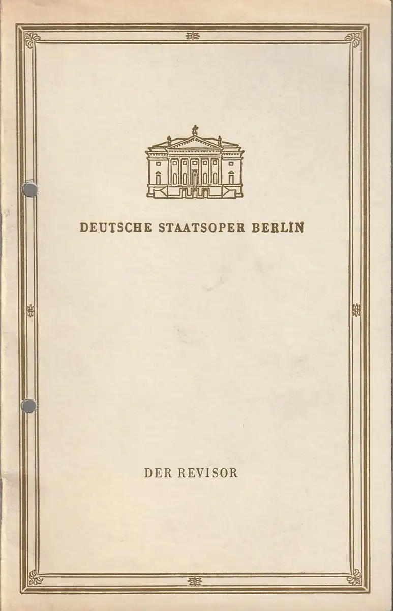 Deutsche Staatsoper Berlin, Werner Otto, Werner Klemke: Programmheft Werner Egk DER REVISOR 14. Janauar 1958.