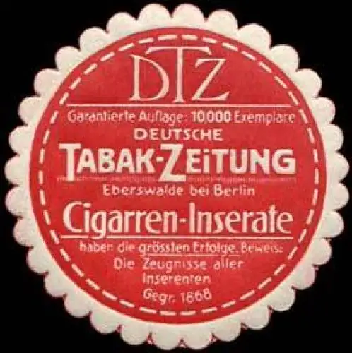 DTZ, Tabakwaren, Größe/Zustand: 4 , guter Zustand, Original alte Reklamemarke die seinerzeit für die Werbung benutzt wurde