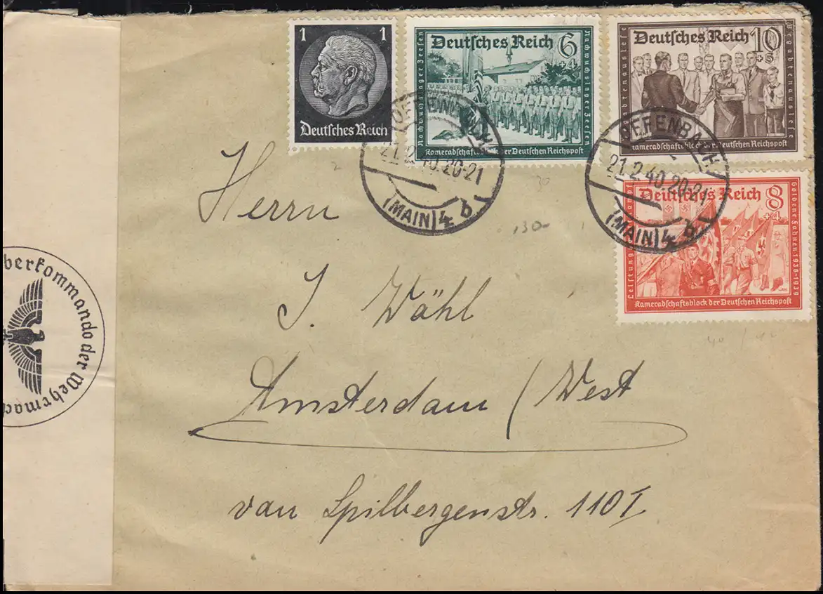 Deutsche Zensur auf Brief mit MiF aus OFFENBACH (MAIN) 4b 21.2.40 nach Amsterdam