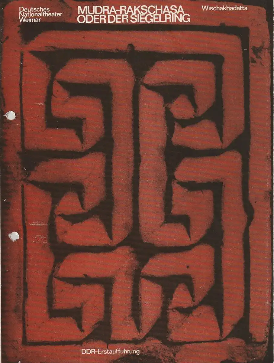 Ein altindisches Stück von Wischakhadatta. DDR Erstaufführung. Gastspiel zu den XX. Berliner Festtagen. Übersetzung: Wolfgang Morgenroth. Nachdichtung: Wolfgang Mach. Inszenierung: Vijaya Mehta / Fritz Bennewitz. Ausstattung: D. G. Godse / Franz Havemann / Ingrid Rahaus. Choreographie: Guru Krishnan Kutti. Musik: Bhaskar Chandavarkar. Mitwirkende: Detlef Heintze, Victor Dräger, Fred Diesko, Hans Radloff, Hasso Billerbeck, Peter Berg, Peter Rauch, Roland Richter, Karl Albert, Fred Graeve, Dietrich Mechow, u.a. - Theaterprogramm, Opernprogramm, Ballettprogramm, Musicalprogramm, Konzertprogramm, Theatermemorabilia, Programmhefte Sammlung, deutsche Theatergeschichte.