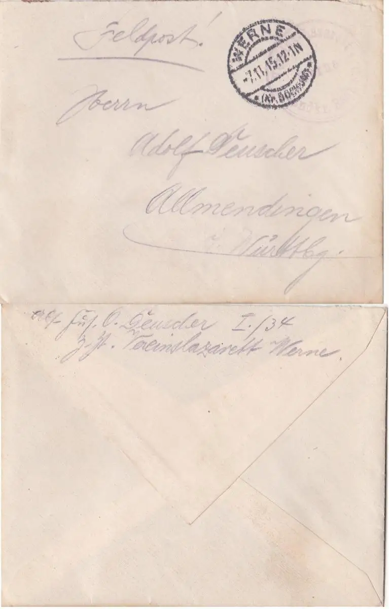 Gelaufen am 7.11.1915 von Werne nach Allmendingen