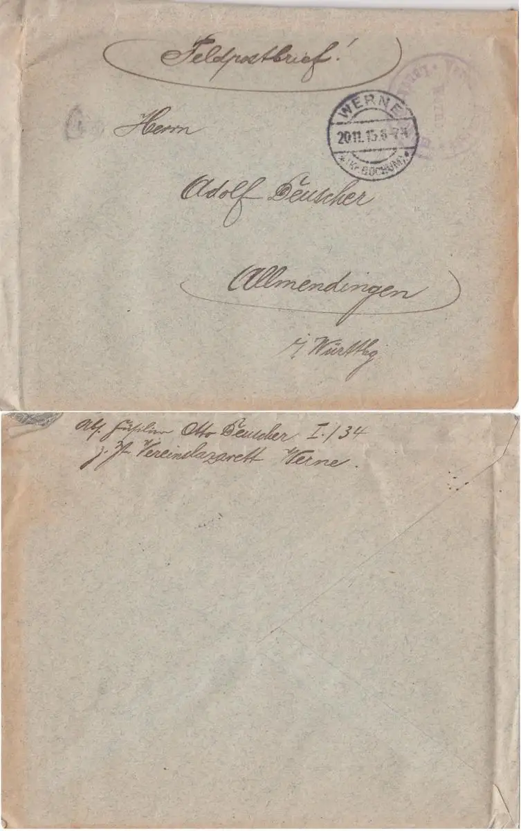 Gelaufen am 20.11.1915 von Werne nach Allmendingen