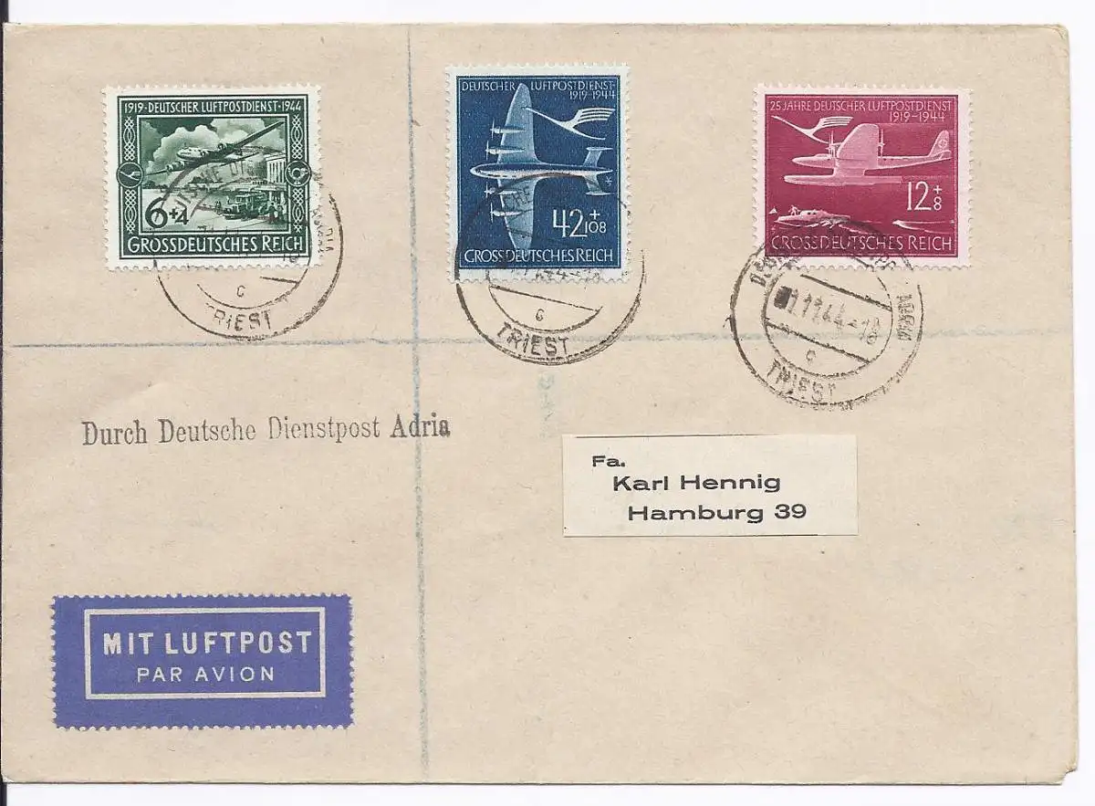 DT- Reich (004331) Beleg Deutsche Dienstpost Adria gelaufen am 1.11.1944 aus Triest
