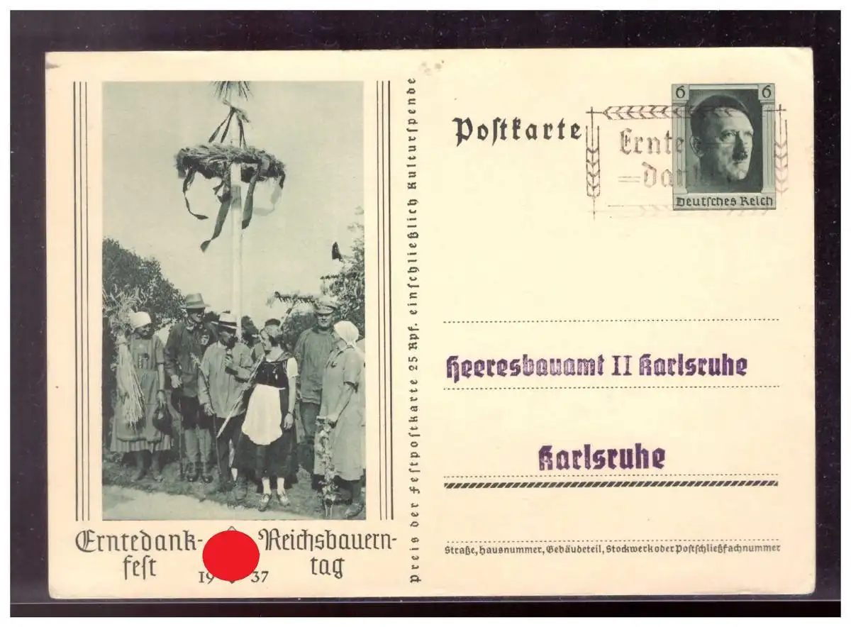 DT-Reich (021211) Ganzsache P265 nur mit Nebenstempel Erntedankfest ohne Ortsstempel!! nicht gelaufen
