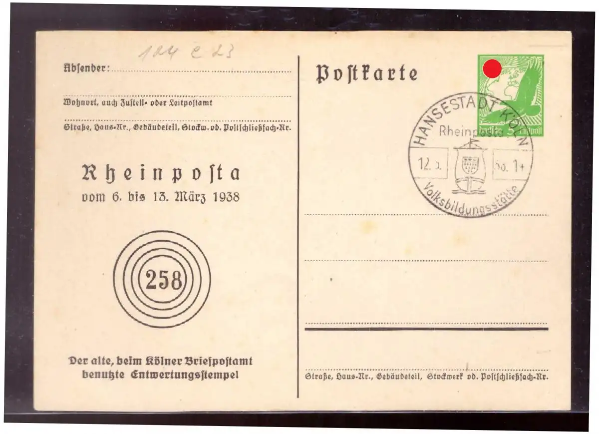 Dt- Reich (021330) Privatganzsache PP 124/ C 28, blanco mit SST Hansestadt Köln, Volksbildungsstätte