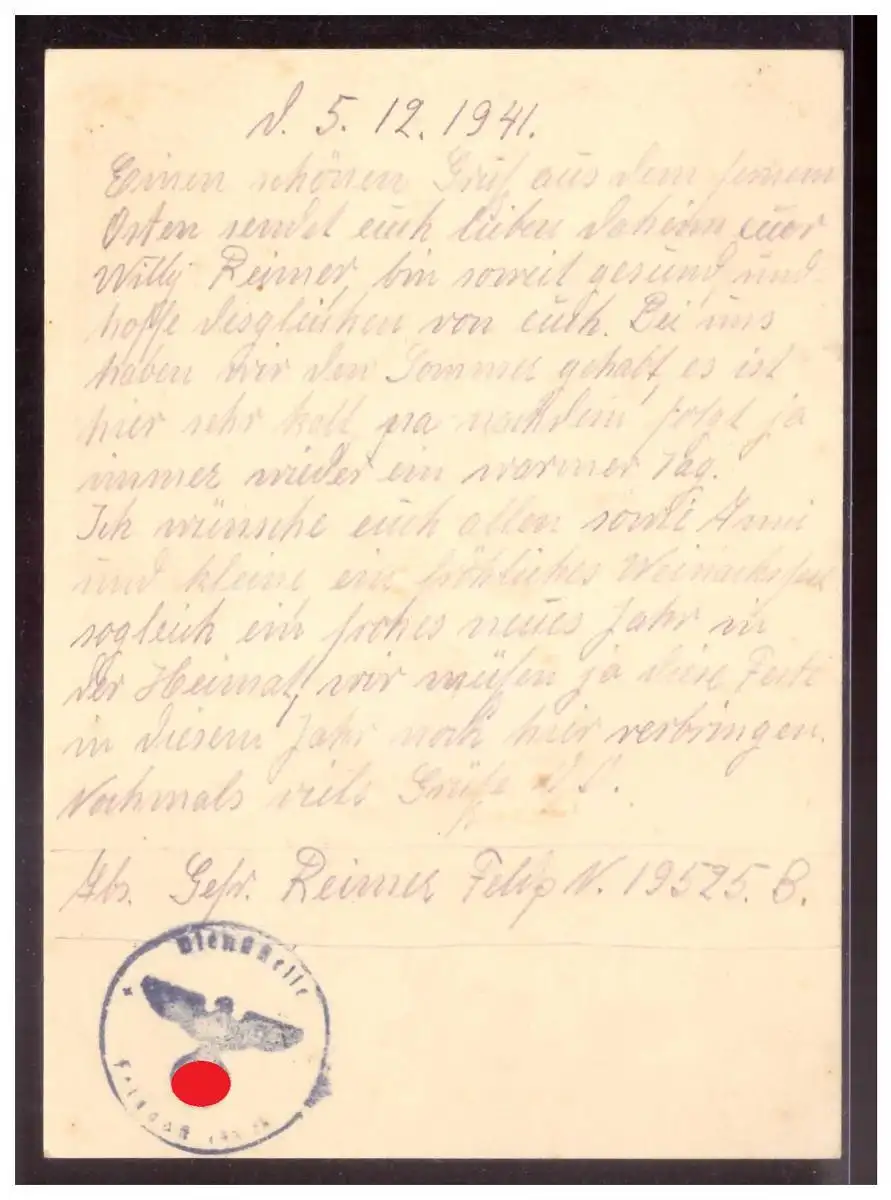 Dt- Reich (021590) Propaganda Feldpost Spruchkarte, gelaufen 7.12.1941 Feldpost Nummer 19525 B