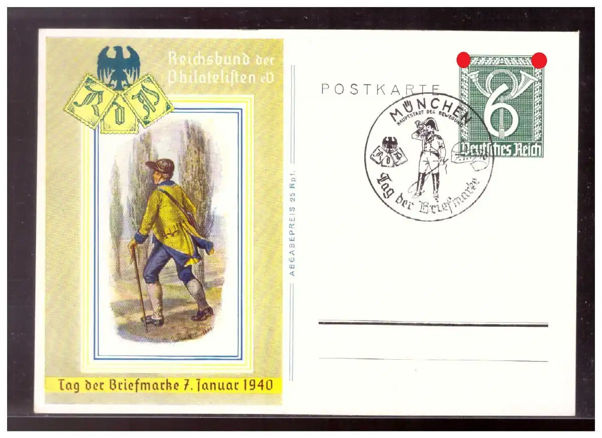 Dt.- Reich (020849) Propaganda Ganzsache P289 KDF Tag der Briefmarke, blanco gestempelt am 7.1.1940 in München