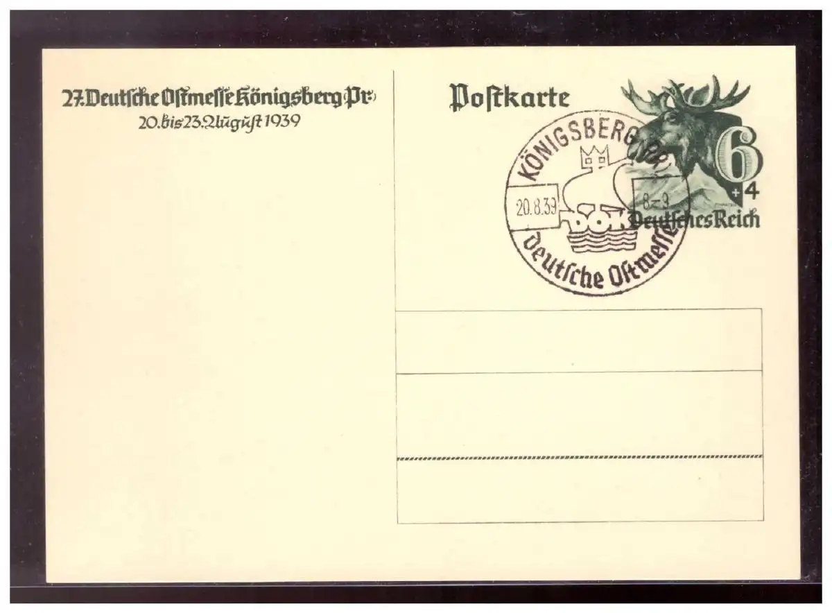Dt.- Reich (020864) Propaganda Ganzsache P280, Ostseemesse Königsberg, blanco gest. Königsberg 20.8.1939