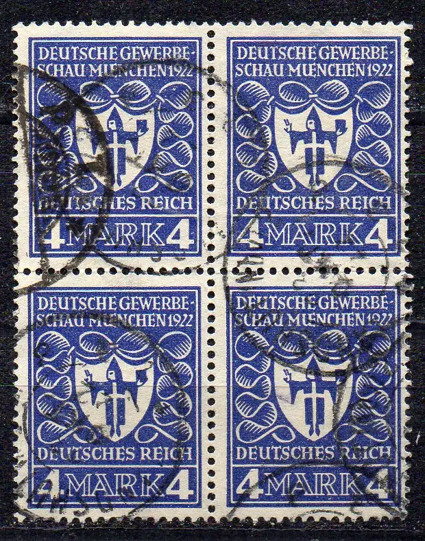 Deutsches Reich, Mi-Nr. 202 gest., 4´er-Block, Deutsche Gewerbeschau München