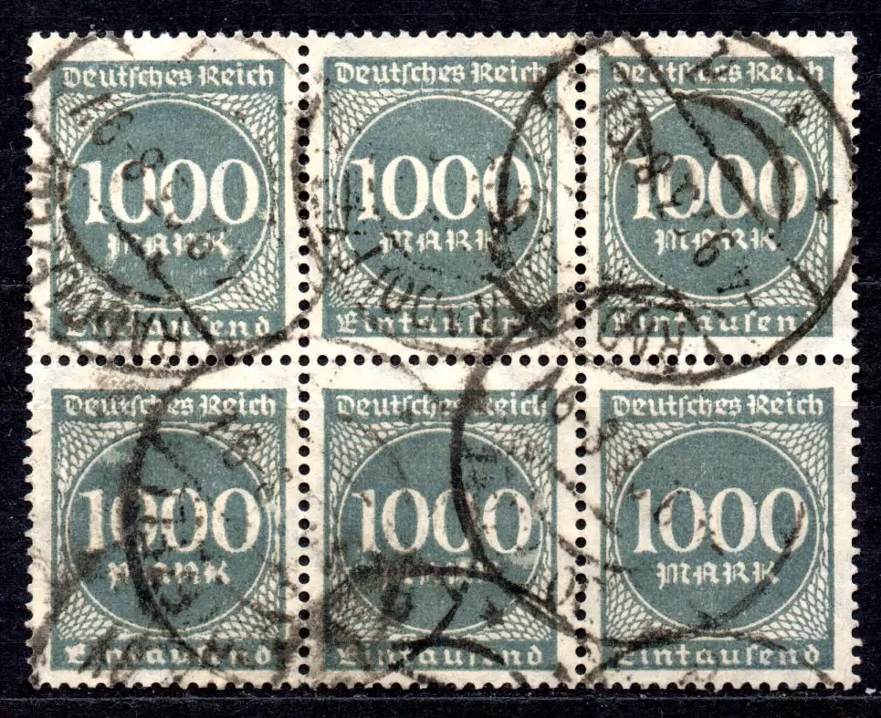 Deutsches Reich, Mi-Nr. 273 gest., 6´er-Block, Ziffer im Kreis