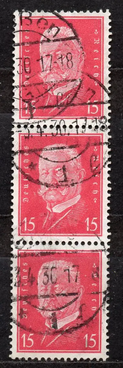 Deutsches Reich, Mi-Nr. 414 gest., senkr. 3´er-Streifen, Reichspräsident Paul von Hindenburg