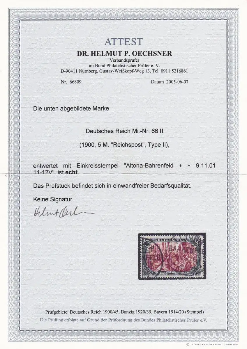 Deutsches Reich: MiNr. 66II, gestempelt Altona-Bahrenfeld, BPP Attest