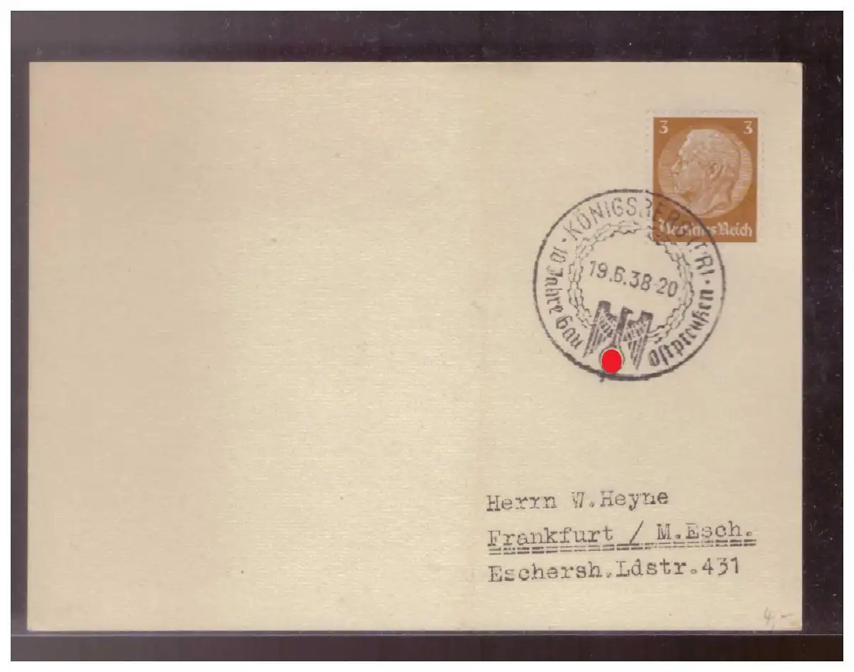 Dt- Reich (024349) Privatganzsache PP122/ A1 mit Sonderstempel Königsberg, 10 Jahre Gau Ostpreußen, gestempelt 19.6.1938