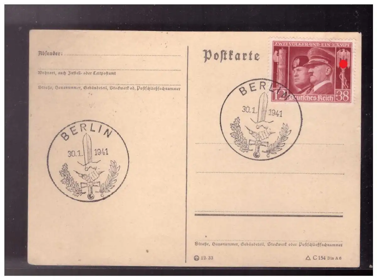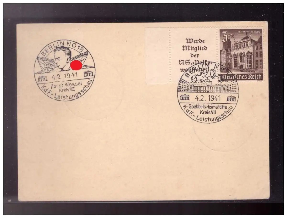Dt- Reich (024360) Postkarte mit 3 ver. SST Berlin 2 sehr selteneHorst Wessels , Göbbels Heimstätte Kreis VII, 4.2.1941