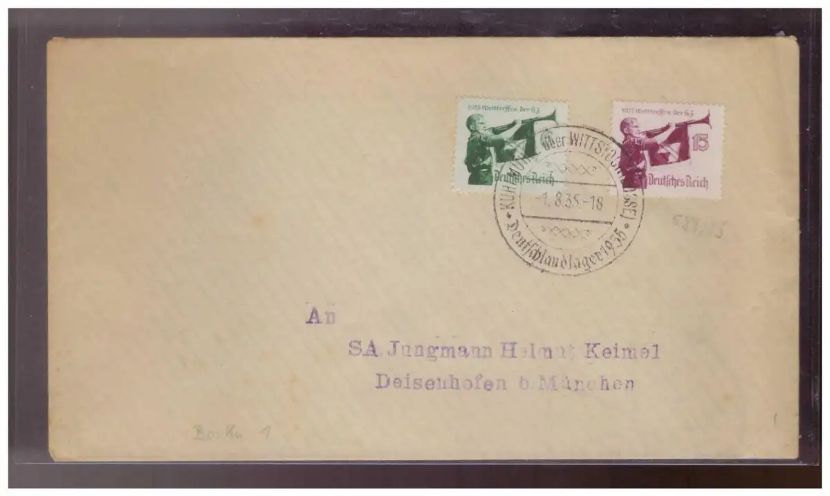 Dt- Reich (024376) Brief mit Propagandastempel HJ (Hitlerjugend) Kuhlmühle Deutschlandlager 1935, gest. am 1.8.1935