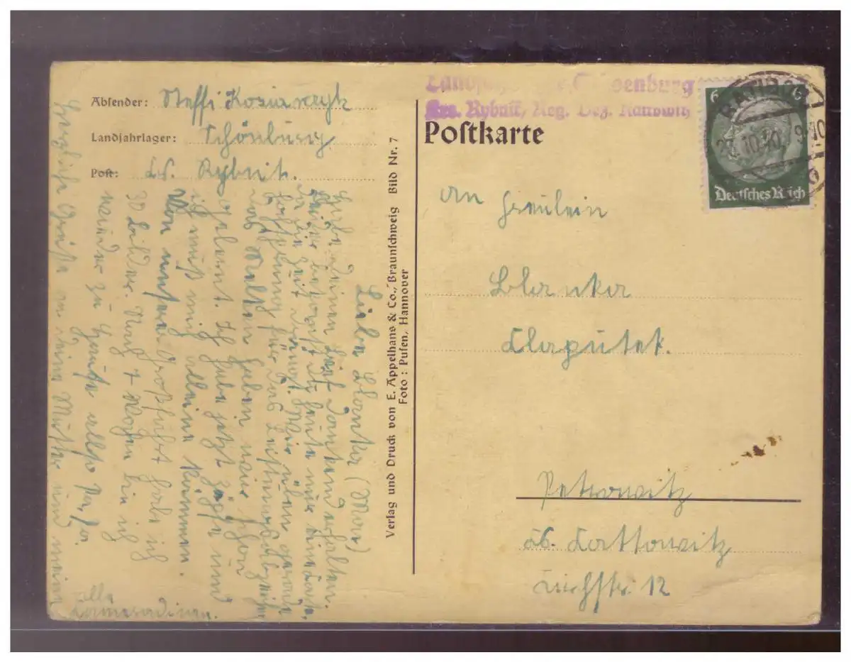 Dt- Reich (024452) AK Landjahrmädel, RS Gummistempel Landjahrmädel, gelaufen 1940