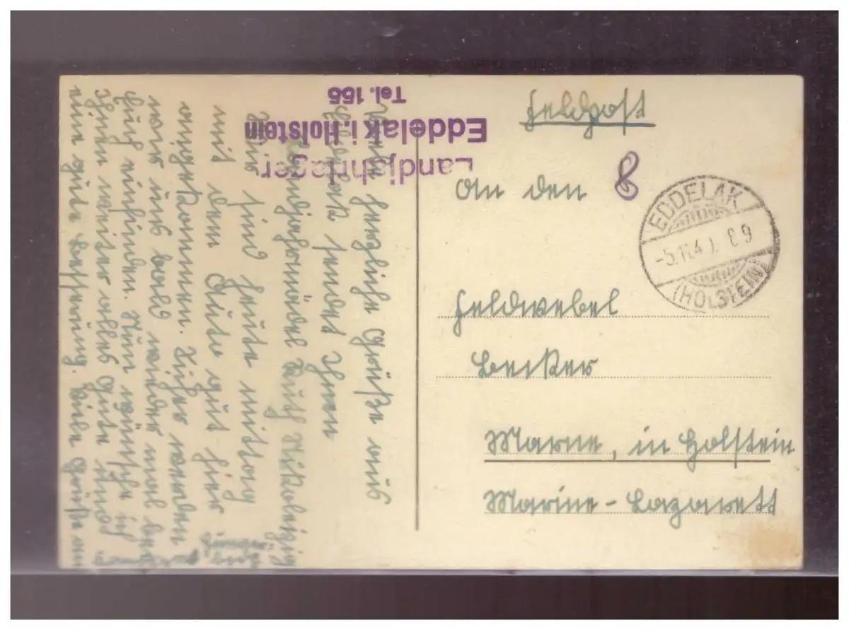 Dt- Reich (024456) AK Landjahrlager Eddelak i Holstein, mit Gummistempel gelaufen mit Feldpost und TST 5.11.1941 Eddelak