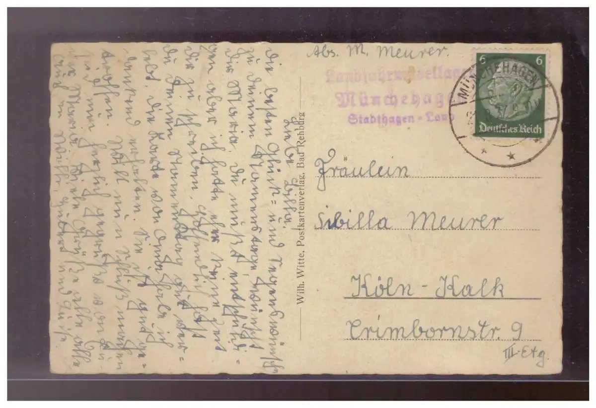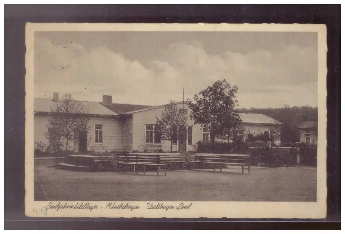 Dt- Reich (024458) AK Landjahrmädellager Münchehagen, Stadthagen-Land, mit Gummistempel gelaufen mit TST Karte hat Knick