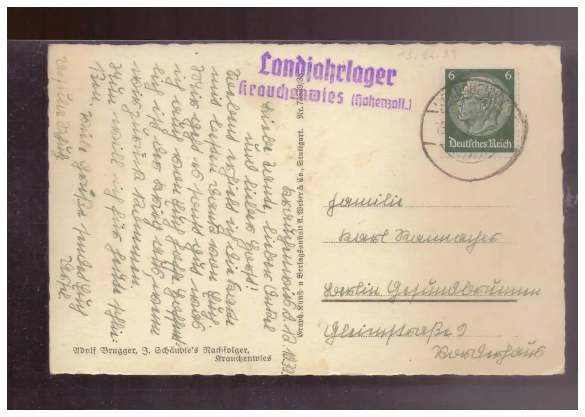 Dt- Reich (024459) AK Krauchenwies Landjahrlager, mit Gummistempel gelaufen mit TST vom 13.10.1939