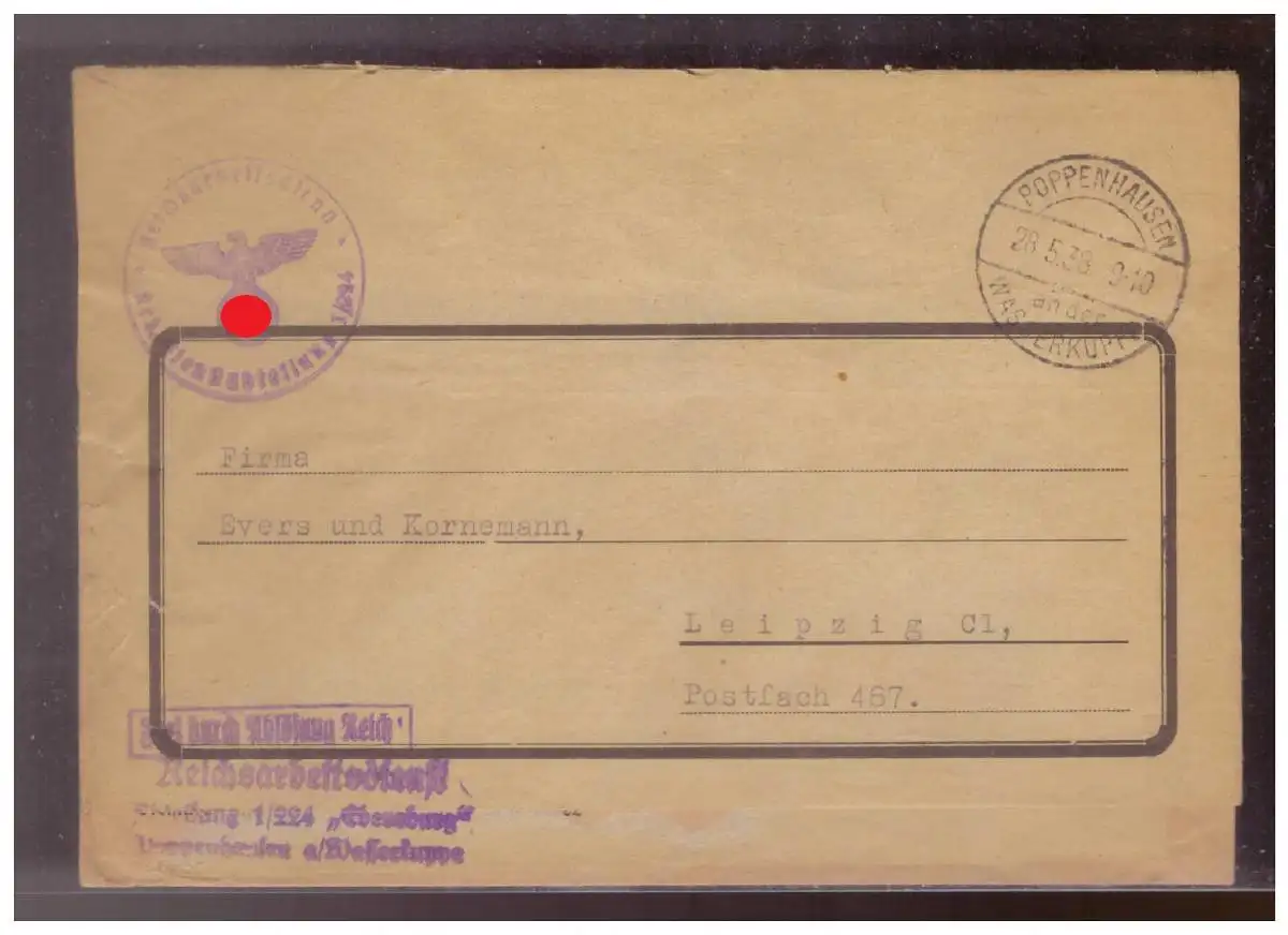 Dt- Reich (024470) Brief Reichsarbeitsdienst 1/224 Ebersburg/ Rhön gelaufen Poppenweiler/ Wasserkuppe 28.5.1938