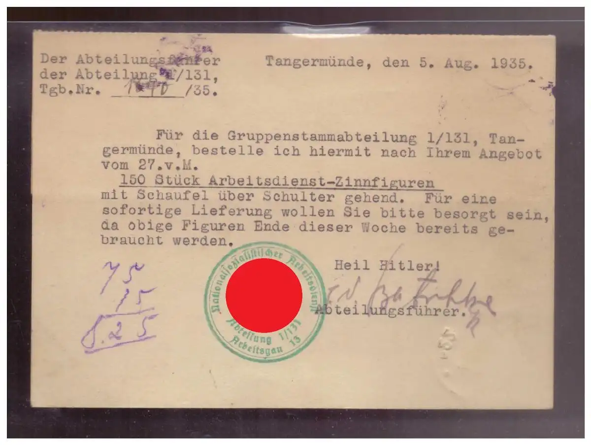 Dt- Reich (024478) Postkarte Bestellung mit Stempel Nationalsaozialistischer Arbeitsdienst Abteilung 1/131 Arbeitsgau