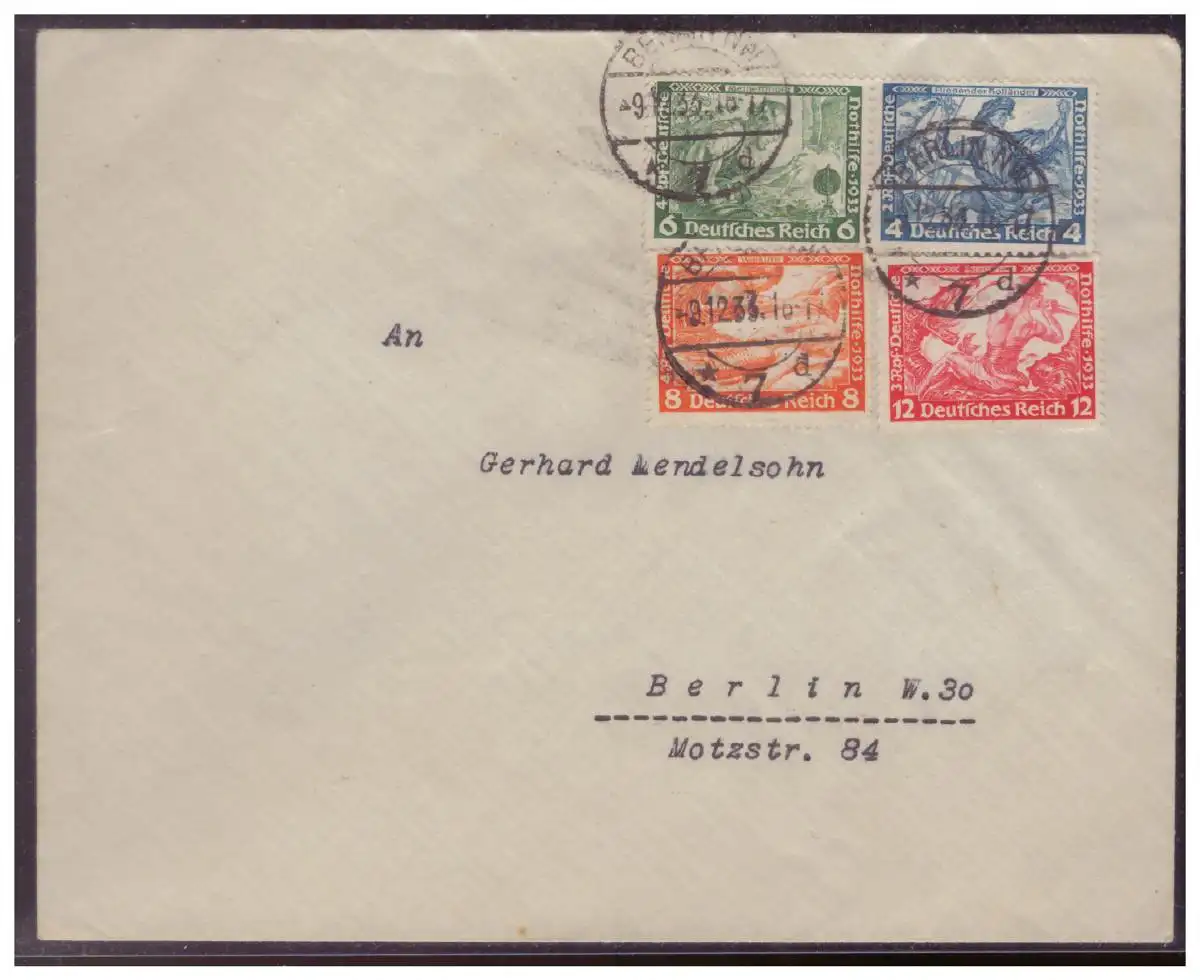Motive (008005) Brief an Mendelsohn mit Wagner ZD W47 und MNR 503, 504, gelaufen Berlin am 9.12.1933