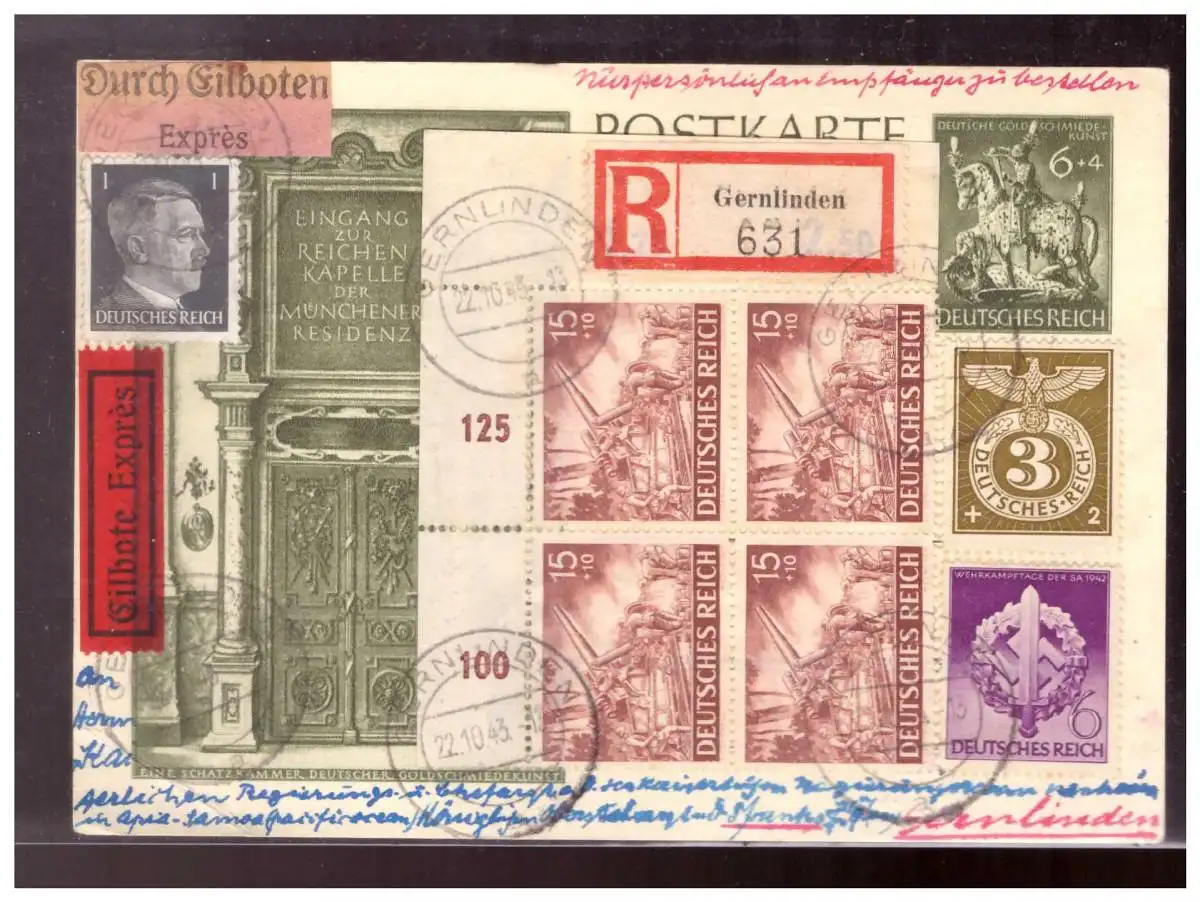 Dt- Reich (009828) Ganzsache P297 Bedarf mit Zusatzfrankatur gelaufen als Einschreiben- Eilboten Gernlinden 20.10.1943