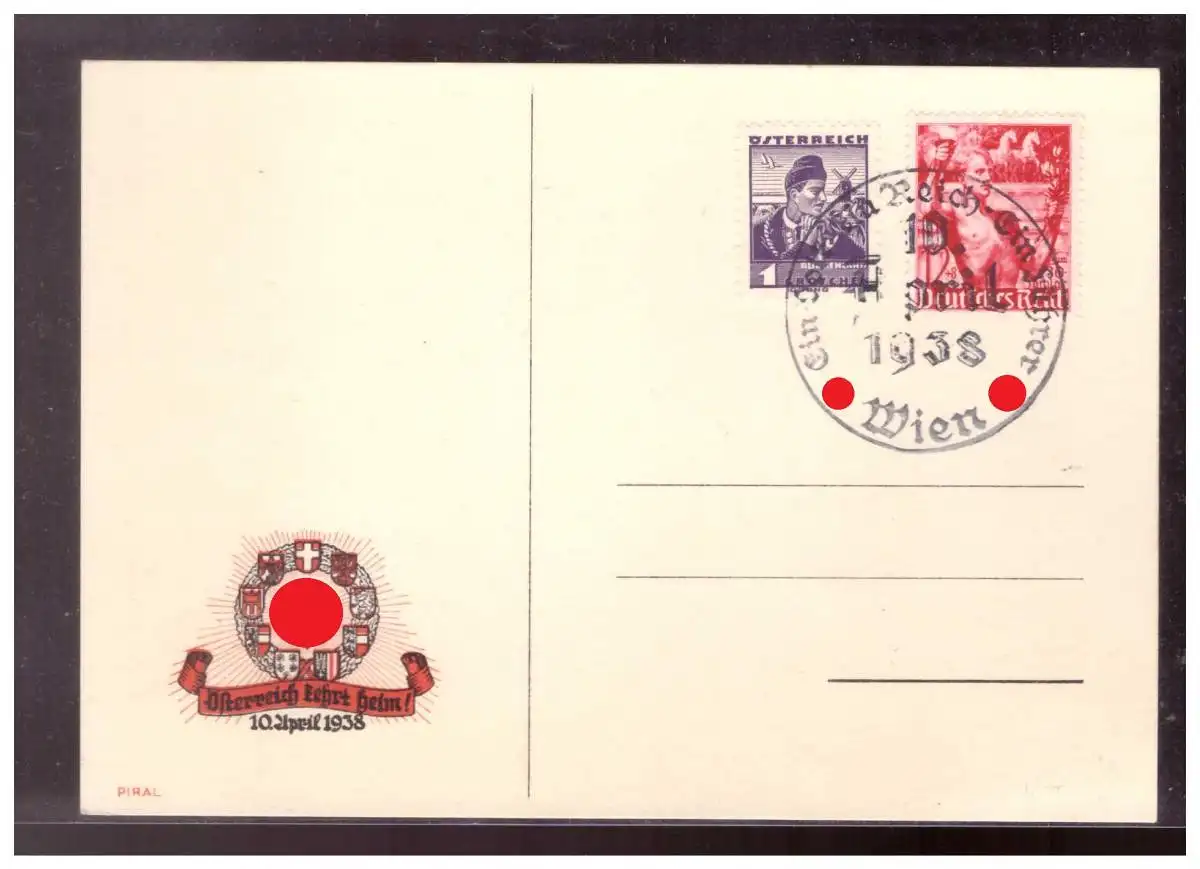 DT- Reich (009918) Propagandakarte Österreich Kehrt Heim 10.4.1938, blanco gestempelt Sonderstempel Wien 10.4.1938