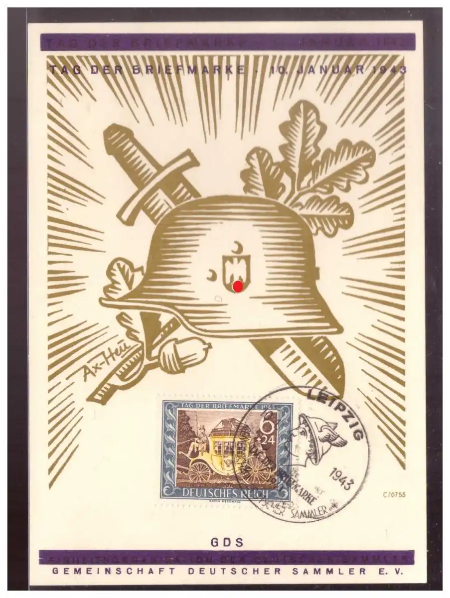 Dt.- Reich (009927) Propaganda Gedenkblatt, Tag der Briefmarke Blatt von 1942 mit neuen Text auf 1943 umgestellt mit SST, Rückseite Klebereste!!