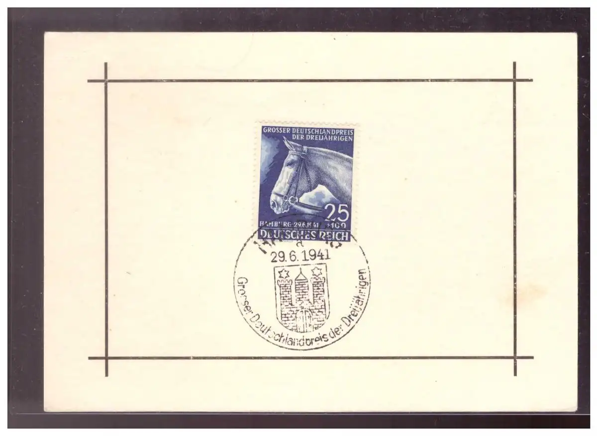 DT- Reich (009929) Stempelblatt MNR779 mit Sonderstempel Hamburg Großer Preis der Dreijährigen am 29.6.1941