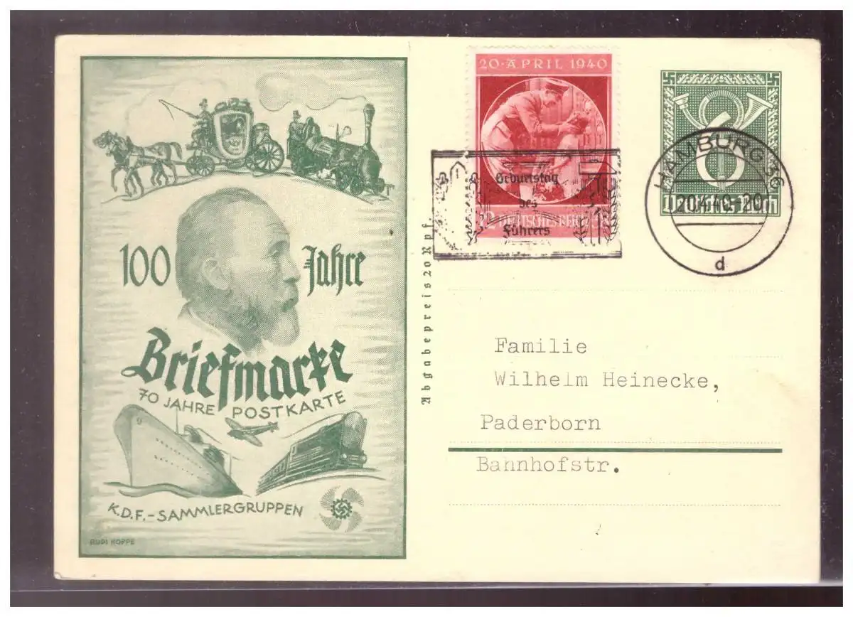 Dt.- Reich (009933) Propaganda Ganzsache PP 149 D/02 100 Jahre Briefmarke, mit Tages Werbestempel Hamburg 20.4.1940