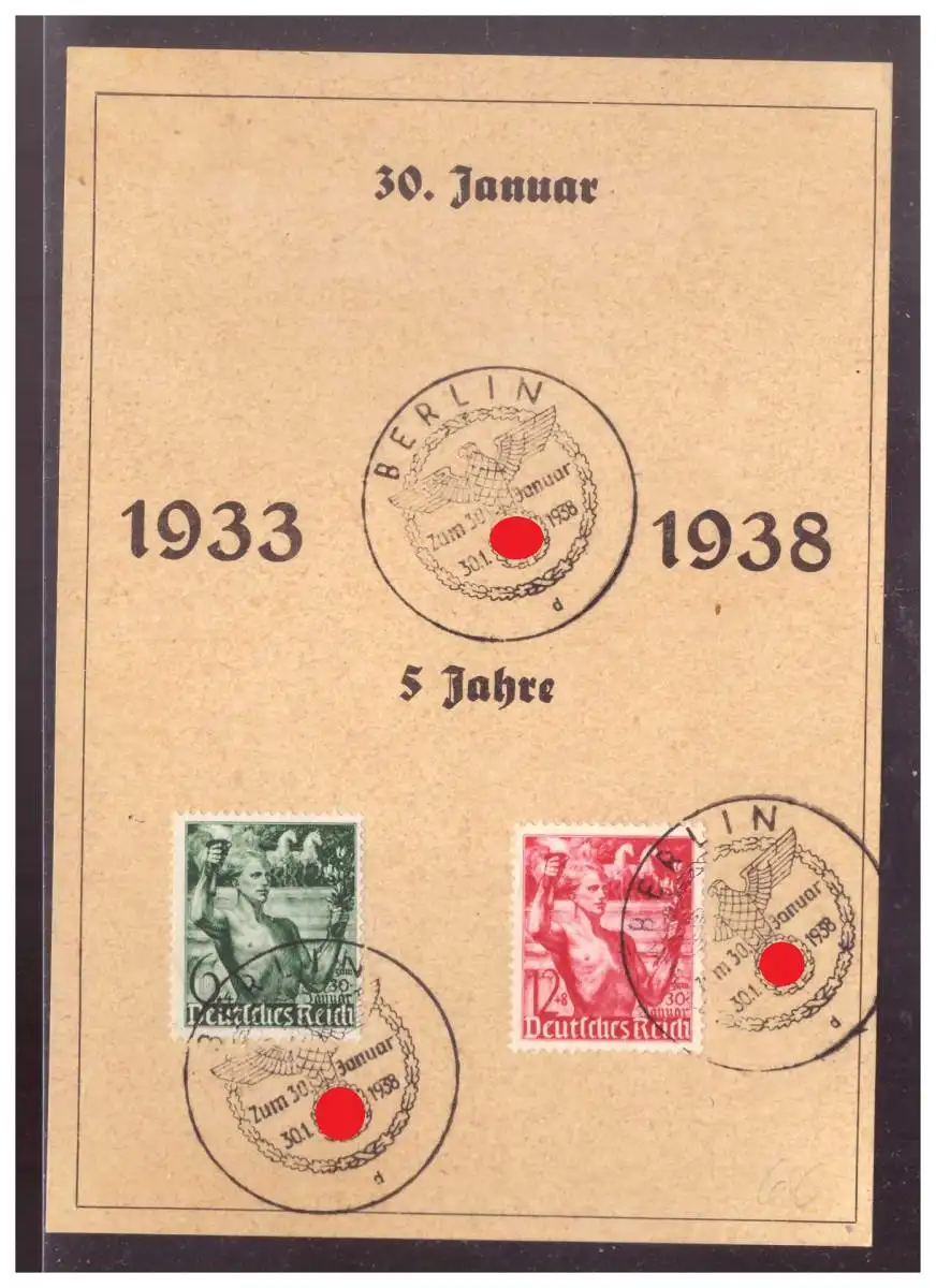 DT- Reich (009934) Propaganda Gedenkblatt mit Sonderstempel Berlin vom 30.1.1938