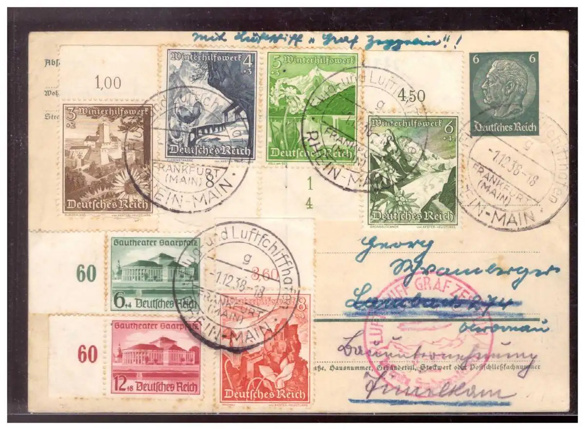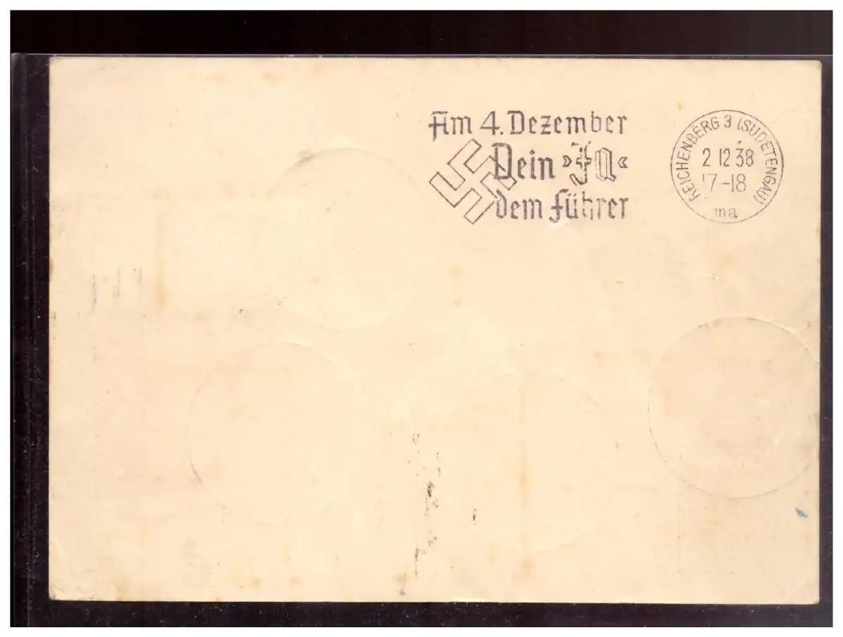 Dt- Reich (020015) Zeppelinpostkarte GS P226 mit Zusatzfrankatur Fahrt ins Sudetenland 2.12.1938 Abwurf Reichenberg
