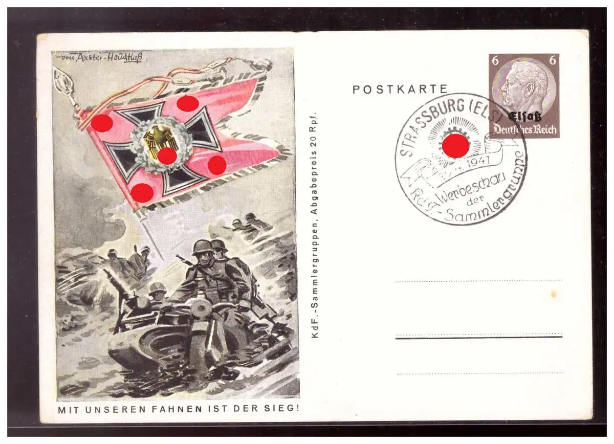 Dt- Reich (020030) WKII Elsaß Propaganda Ganzsache P5/ 03 Kraftradschützen, blanco gestempelt SST Strassburg 20.4.41