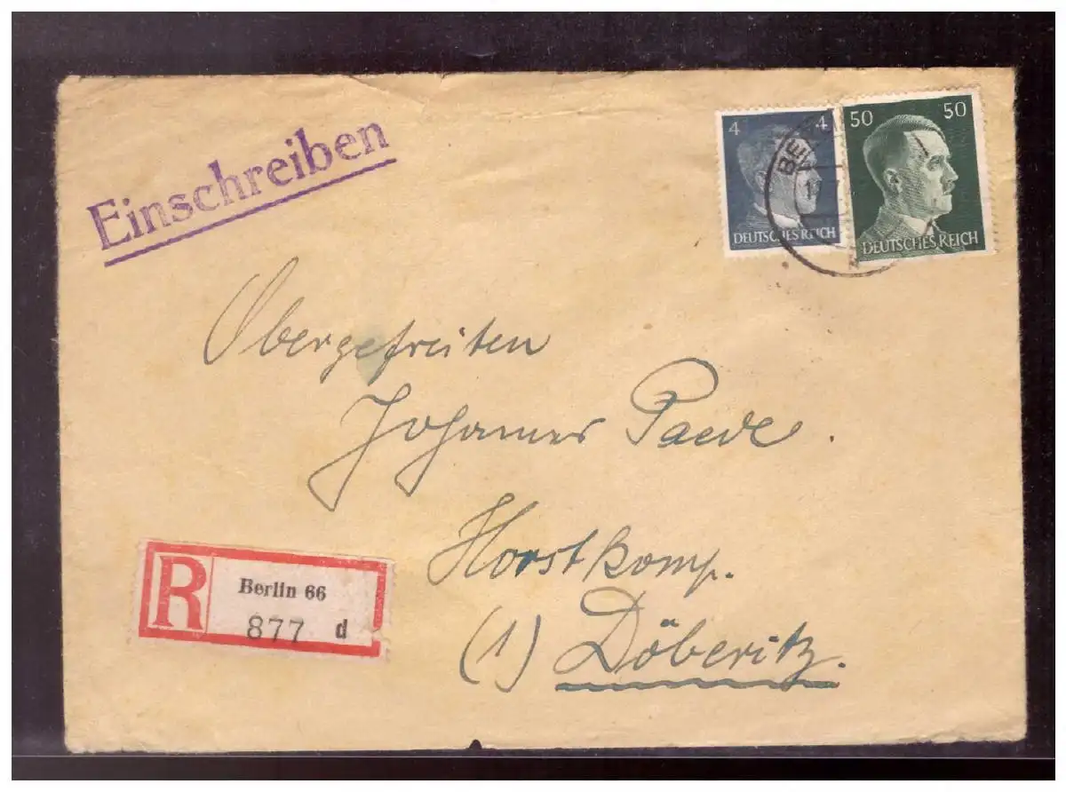 Dt- Reich (020243) Einschreiben Berlin- Döberitz gelaufen am 17.7.1944