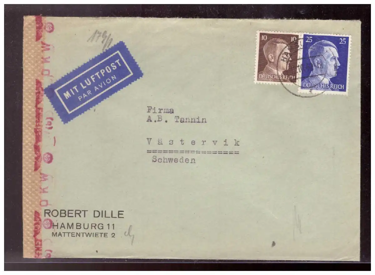 Dt- Reich (020248) Auslands- Luftpost- Brief von Hamburg nach Schweden mit Firmenzudruck und Zensur am 12.10.42