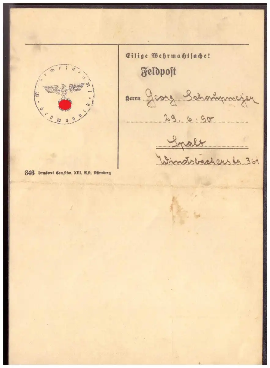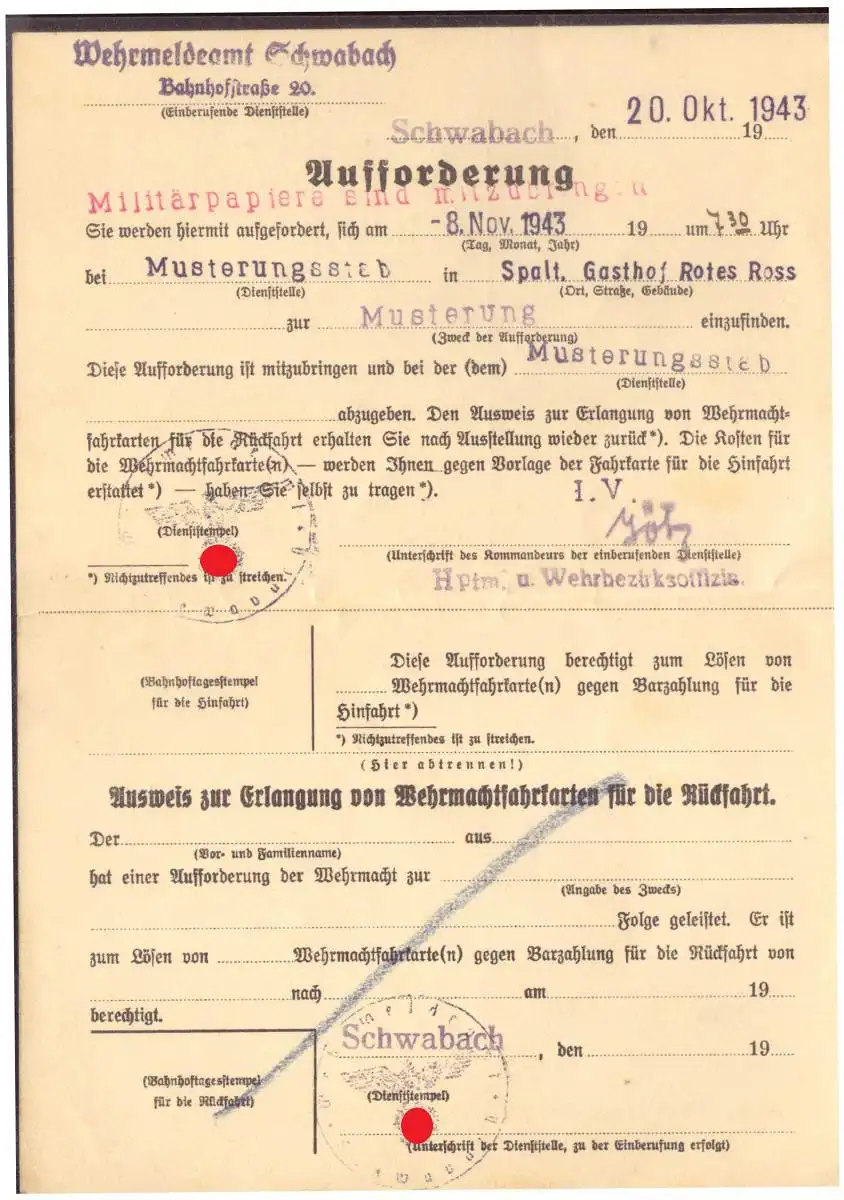 Dt- Reich (020291) Musterungs- Aufforderung Brief Schwabach zum 8.11.1943