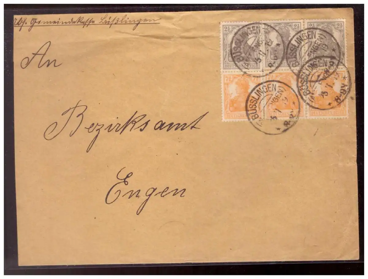 Dt- Reich (020604) Brief mit 3 x Zusammendruck S11a gelaufen von Büsslingen nach Engen 25.11.1919