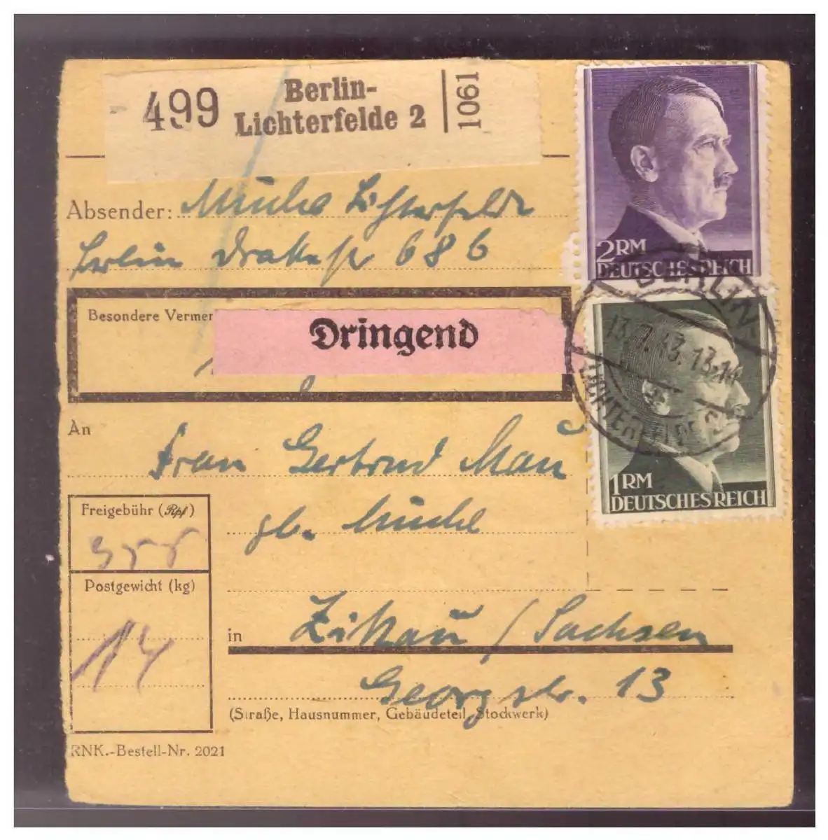 Dt- Reich (020970) Paketkarte Berlin/ Lichtenfelde vom 13.7.1943