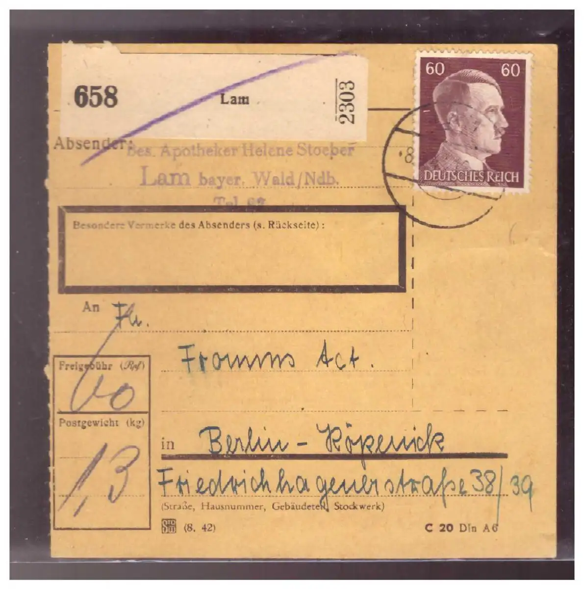 Dt- Reich (020975) Paketkarte Hitlerfrankatur Lam 1944