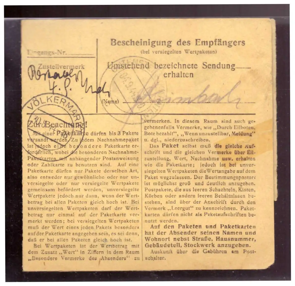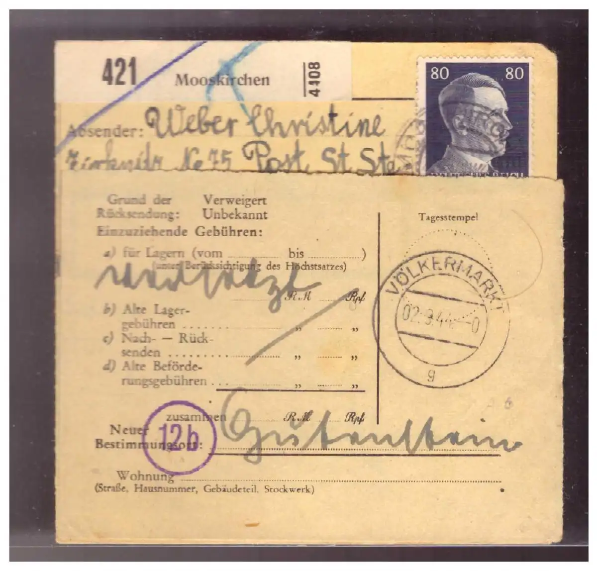 Dt- Reich (020978) Paketkarte Hitlerfrankatur Mooskirchen mit Gebührenzettel mit Postleitzahlenvorläufer von 1944