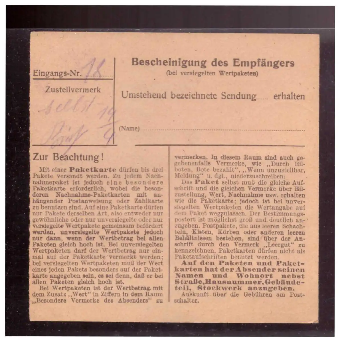 Händler-Kategorie: Paketkarte